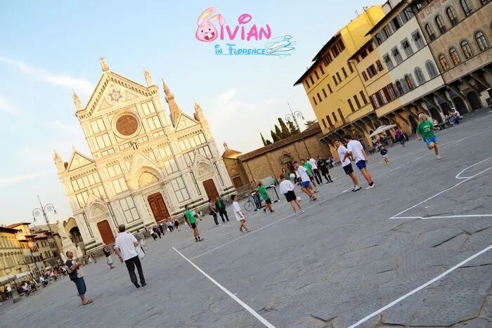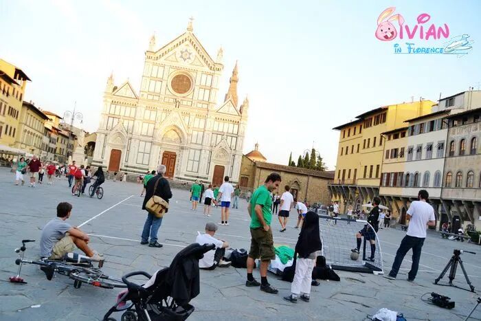 教堂前的空地很多孩子在踢球,呀,说不定未来的意大利球星就在他们里面了