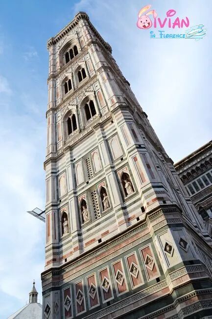 高达82米的钟楼是由乔托设计的。楼内有400多级台阶,可登高俯瞰全城。