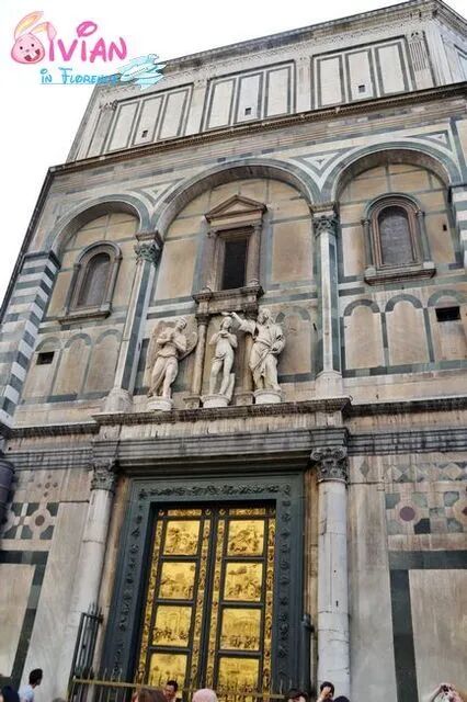 圣母百花大教堂门上和外墙上精美的彩画和雕像