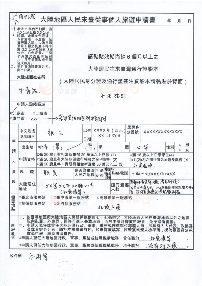 现场再填张“大陆居民往来台湾地区申请表”,取个像,就OK了。