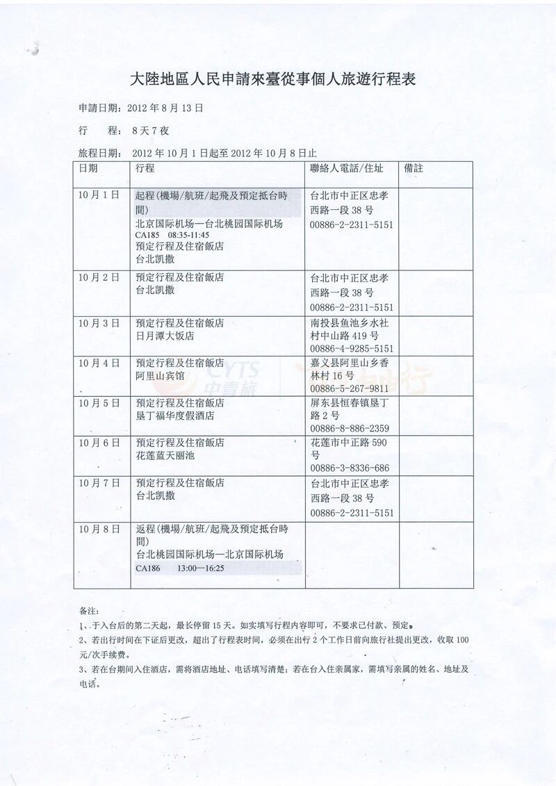 关键词:台湾自由行 台湾自助游 台湾通行证 台湾入台证