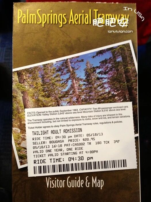 早餐后,驱车前往【棕榈泉】,特别赠送*搭乘当地最著名的【高空旋转缆车Palm Springs Aerial Tramway】,缆车从San Jacinto山脚下的Tramway Rd.带领游客直升上2.5英哩的高山上。
