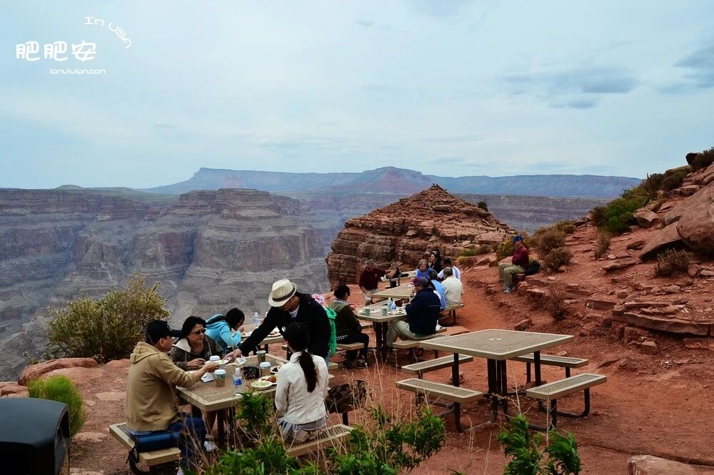 第2个点队伍排的很长,餐食比第一个点好很多,忘了说,大峡谷风很大,还比较冷,而谷底很暖和。