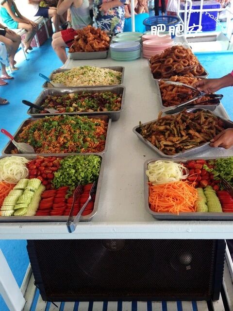 船上的自助午餐,感觉到大家就是监狱里放出来的饿死鬼