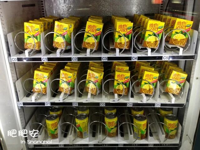 上海中山公园地铁站的饮料机里惊现VITA柠檬茶,听装售4元
