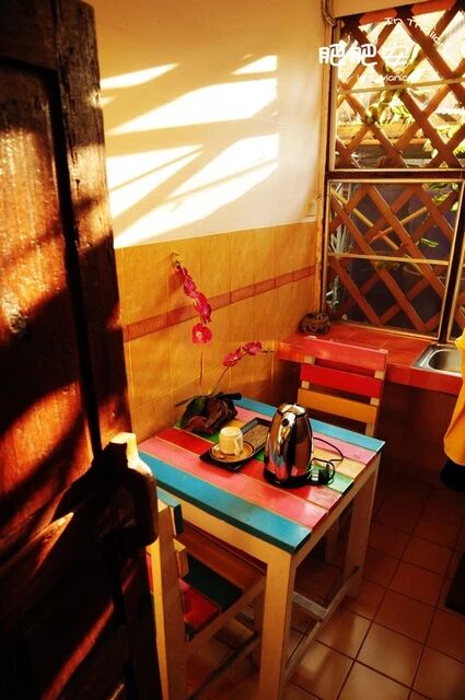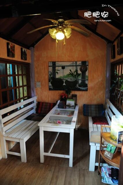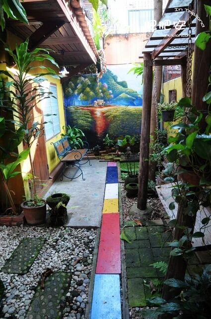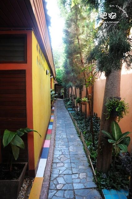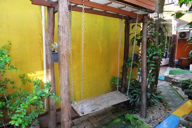 这是我们的房间外面,有秋千,有个小池塘,若住这家店,建议不要选这间房,会有很多住客来荡秋千,比较吵