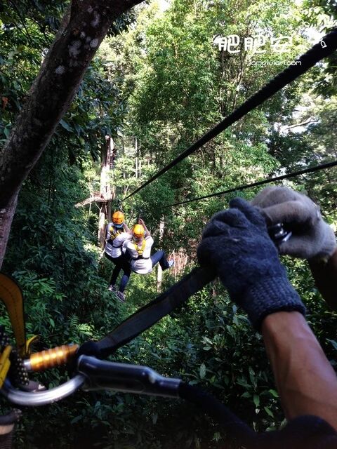 有几个男的胆子也比较小,手机放口袋里,怕手一抖就掉下去了,不过不用怕,教练会帮你捡回来的啦
