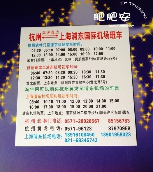 附杭州武林广场往返上海浦东国际机场大巴时刻表一张