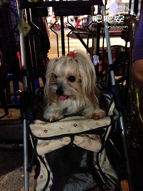 路过四面佛,看见一只很可爱的狗宝宝坐在推车里