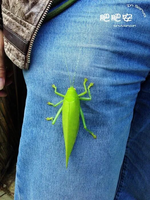 这是蚱蜢吗?超大个呀,还是个孕妇,一直在中哥肩膀上爬来爬去,真好玩