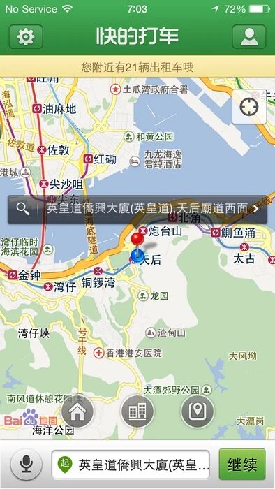 香港快的打车,可是,绿点点,你去哪里了?