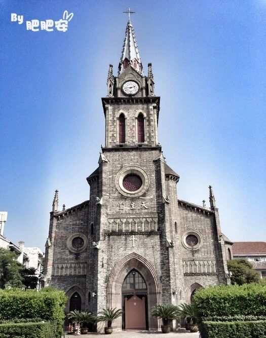 宁波天主教堂,位于浙江省宁波市江北岸新江桥北堍“三江口”北岸,整个建筑群由主教公置、本堂区、及若干偏屋组成。