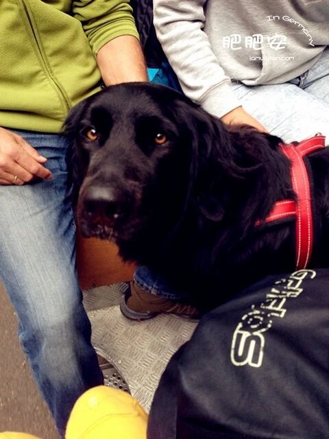 在德国看到各种大狗,一只大黑狗和我同马车,好害怕