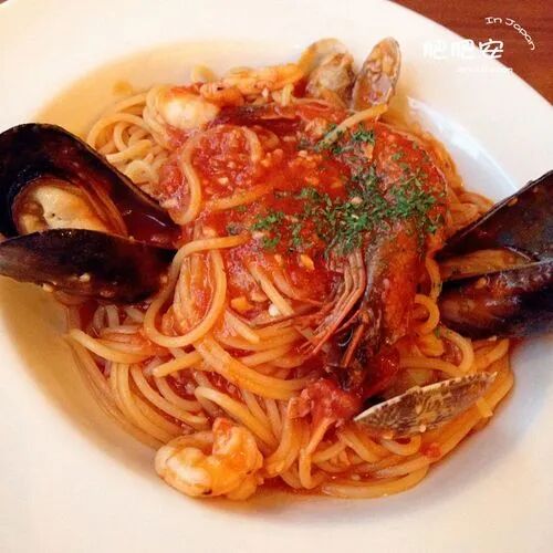 第一次吃加蜂蜜的Pizza,还挺好吃的,pizza加西班牙海鲜面共2354円
