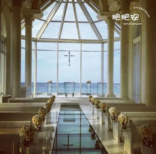 冲绳县读谷村的日航ALIVILA酒店旁的“LAZOR GARDEN”哥特式教堂,大量使用玻璃幕墙.