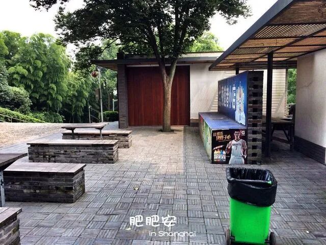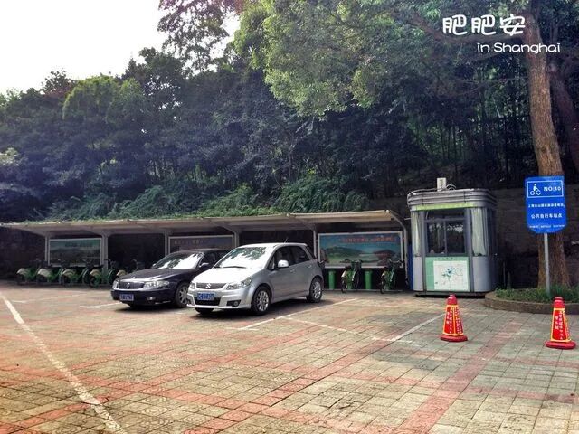 六个公子抵达佘山脚下,他们身后的车库是临时搭建的,平时是公交自行车停放处