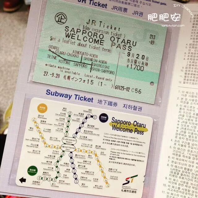 包含一张札幌小樽往返JR票,一张札幌地铁票