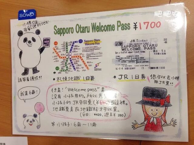 札幌到小樽在札幌站买了SAPPORO OTARU WELCOME PASS 每人1700円