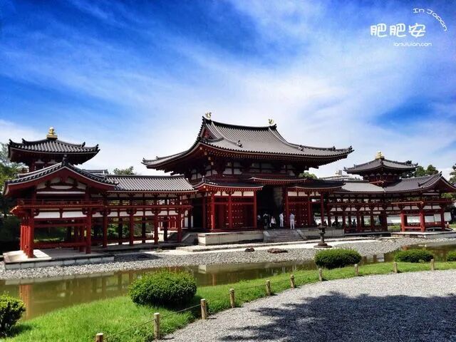 位于日本京都府郊区宇治市莲华116号,是平安时代池泉舟游式的寺院园林。其址可谓风水宝地,前临宇治川,远对朝日山。贞观年间(859—— 877)嵯峨天皇的儿子、左大臣造园家源融(822——895)据此开创别墅。其后,阳成天皇、宇多天皇、朱雀天皇先后在此构建别庄,长德四年(998) 摄政和太政大臣藤原道长得此地重构园宅,园中樱花、杜鹃花和莲花每年喷芳吐艳,平等院于1994年被联合国教科文组织列入为世界文化遗产。(摘自百度百科)