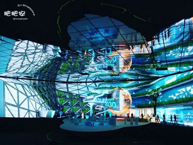 展览的第二部分,关于城市的未来,半球幕加镜面反射