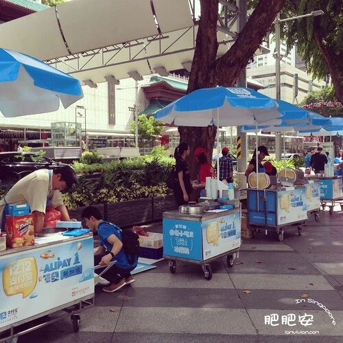 双12那天,新加坡乌节路支付宝搞活动,1元人民币买三明治冰淇淋,活动持续到18点,