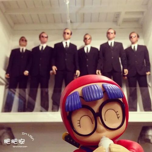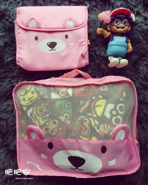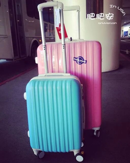 2个不同的国家飞美国,1人1个箱子,放在一起还挺萌的。