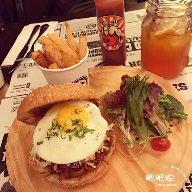 码头有几家小卖部,选了鸡肉汉堡,2新币,味道还行呢