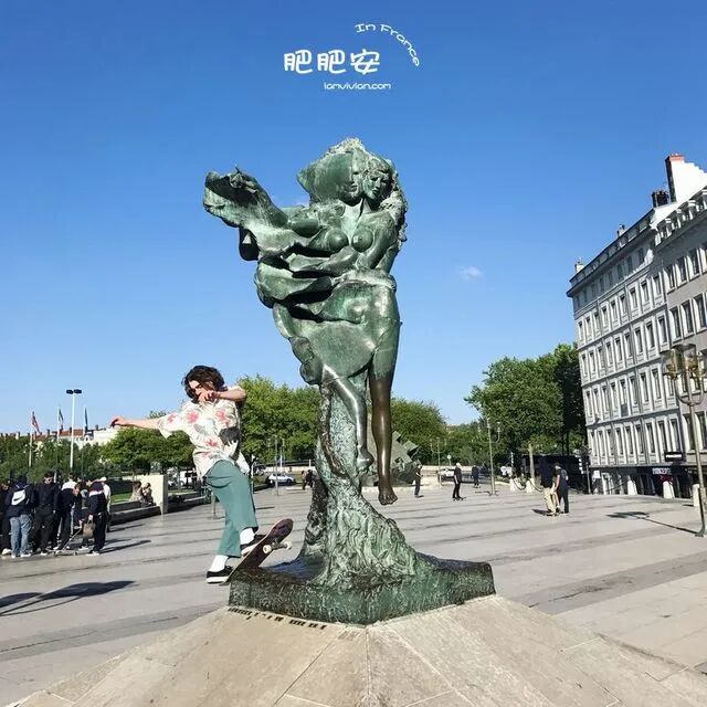 位于市政厅东北、罗纳河西岸,广场喷泉旁边经常能看到很多玩滑板和旱冰的人。