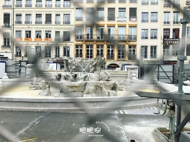 堪称里昂心脏,广场中央本来有一座建于19世纪的艺术喷泉,现在围了起来,围栏上有图片