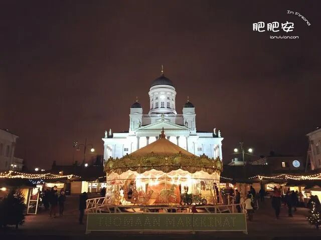 临近圣诞节,广场上的圣诞集市、旋转木马。
