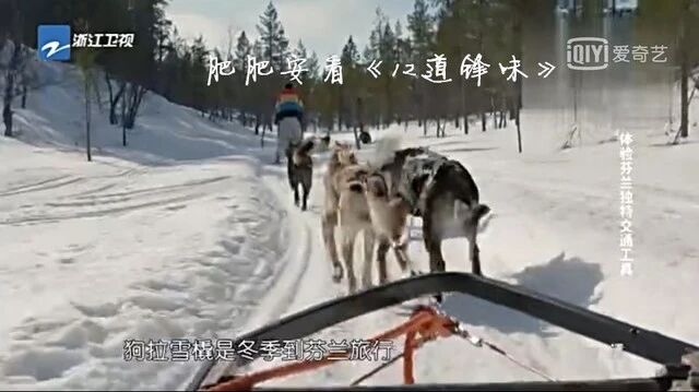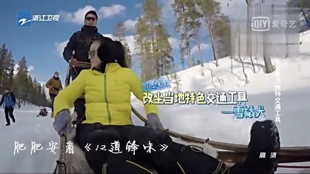 《12道锋味》中谢霆锋和他经纪人体验了狗拉雪橇