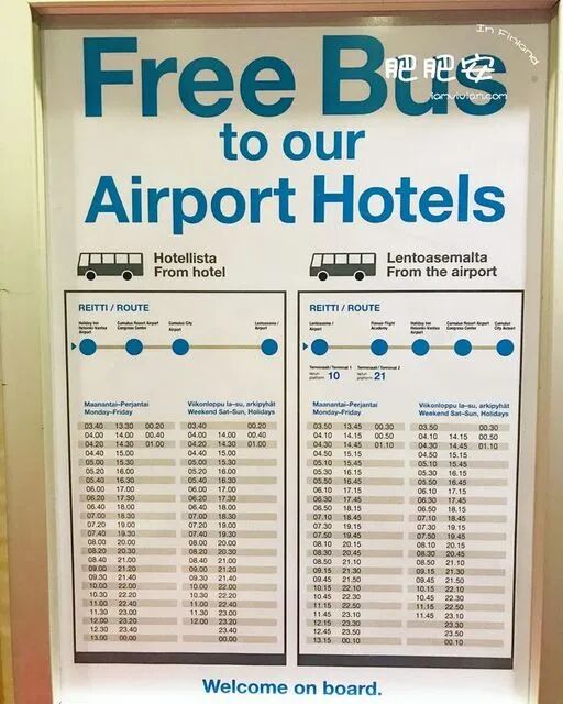 机场和酒店有免费接驳巴士,机场21号站台候车