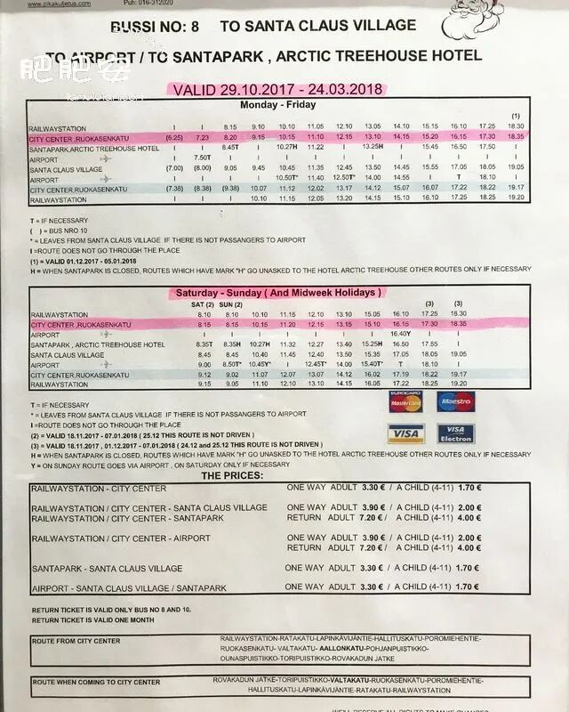 酒店外面的公路就有一个车站,有大巴车发往罗瓦涅米,43.6欧元/人