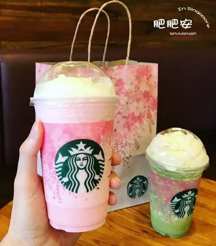 星巴克樱花星冰乐,买一送一,再来了杯抹茶星冰乐