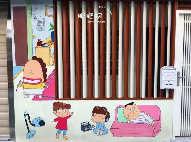 这条彩绘巷是由巷口机车行老板陈家三姐弟共同创作,