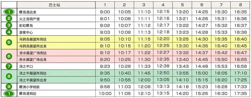 乘坐樱岛周游巴士的游客推荐购买一日乘车券。