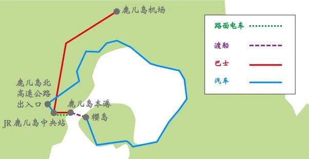 JR鹿儿岛中央站出发有路面电车、巴士、出租车3种方式前往樱岛渡船码头