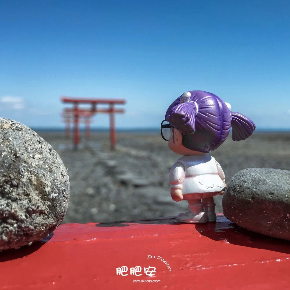 约300年前(1693年左右),对当地任职代官的恶人行为感到棘手的居民们,连合起来下了圈套,邀请代官到冲之岛参加酒宴,之后再将喝醉的代官遗弃在涨潮后的岛上,酒醉后醒来的代官向龙王神寻求帮助。于是龙王神派出大鱼将代官职背在鱼背上逃离小岛。生还后感激大鱼的代官改过向善,建造了“大鱼神社”,从离海岸约200米的海中的建造了鸟居,后来,当地居民也向大鱼祈愿航海安全和渔获丰收,渔民的生活也渐渐转向富裕了。退潮涨潮时有很大的高低落差,最大达到6米,也因此,太良镇被称为“可以看到月亮引力的城市”。漂浮在海上的大鱼神社的海中牌坊,退潮时可以走在牌坊下通过。根据日出月夜等时间和潮位的不同组合,也成了风景照片的绝美拍摄地点。“大鱼神社”右边的海中道路,根据潮汐涨落姿态万千,也非常上镜。
