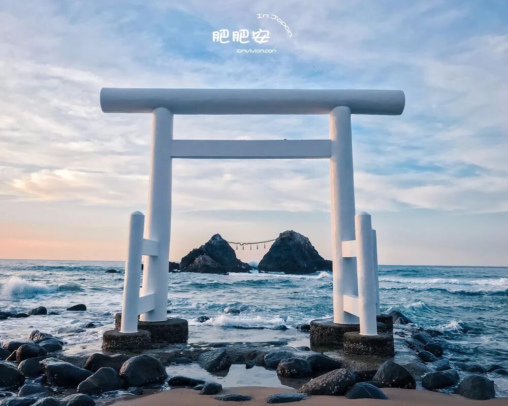 拥有白色鸟居与夫妇岩的樱井二见ヶ浦海岸,是入选为“日本海滩100选(日本の渚100选)”、“日本夕阳100选(日本の夕日100选)”的超人气打卡景点。