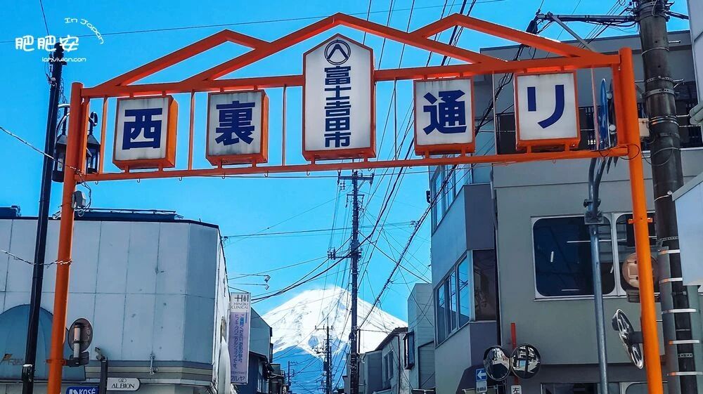 富士吉田商业区,著名的网红打卡点,通过商业街可以直接看到巨大的富士山