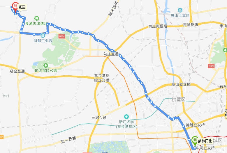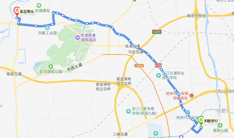② 火车东站西公交站至良渚古城遗址公园的节假日公交旅游专线(257H路)