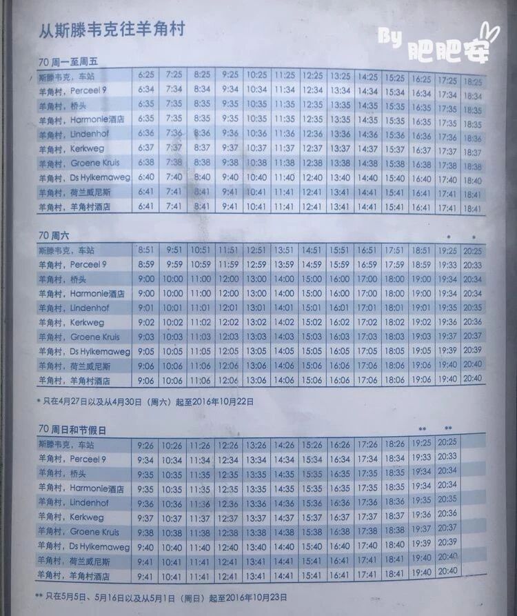 到达「 Steenwijk 」后,出火车站左侧的公交站转乘70路或270路公交车,在 「 Giethoorn Dominee Hylkemaweg 」下车,车程10-15分钟。