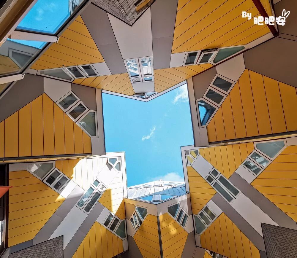 立体方块屋建筑群就像是城市中的一个独立小镇。