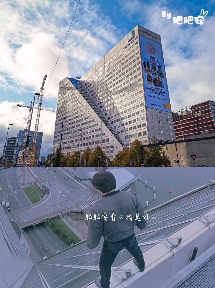 《我是谁》中成龙大哥没有任何绳索保护从大楼超45°的斜边快速滑下。
