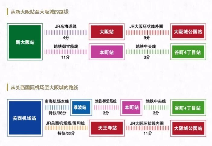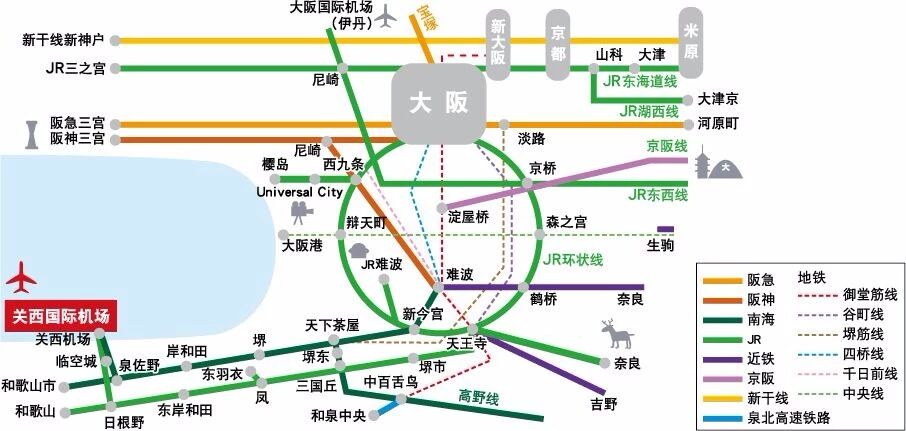可无限次乘坐Osaka Metro、大阪City Bus全线(部分路线除外)、主要大阪市区的阪急、阪神、京阪、近铁和南海电铁。