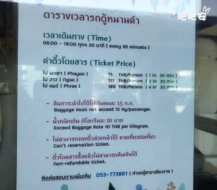 ● 清莱Bus Station Terminal 1-帕夭府 2h (只有上午两班)