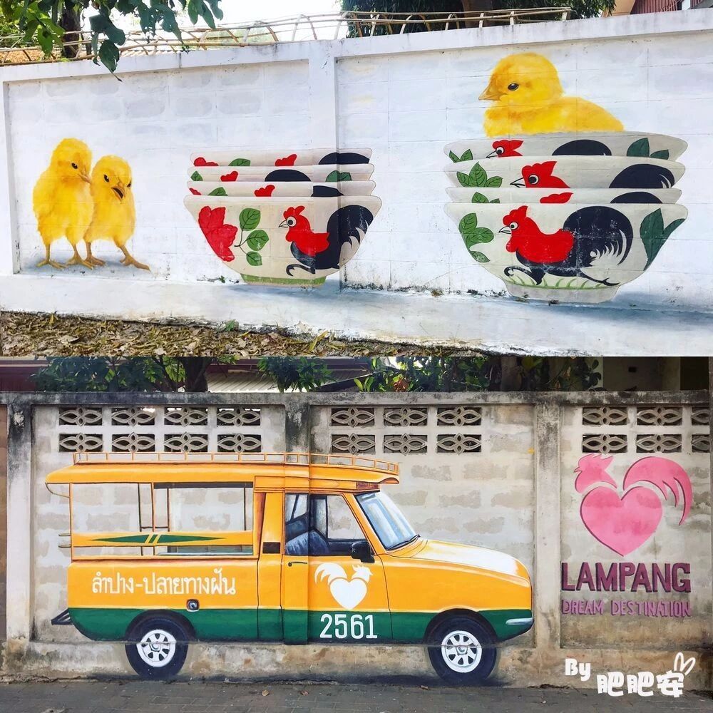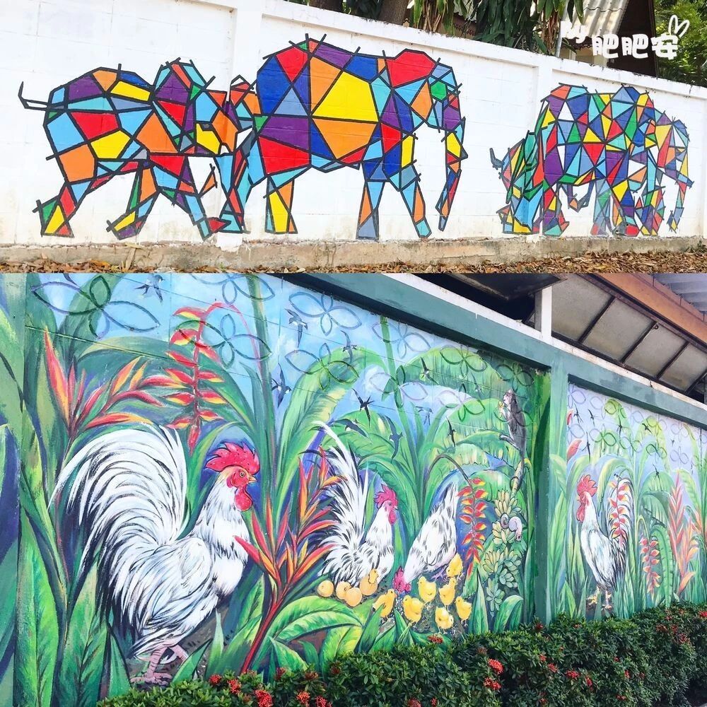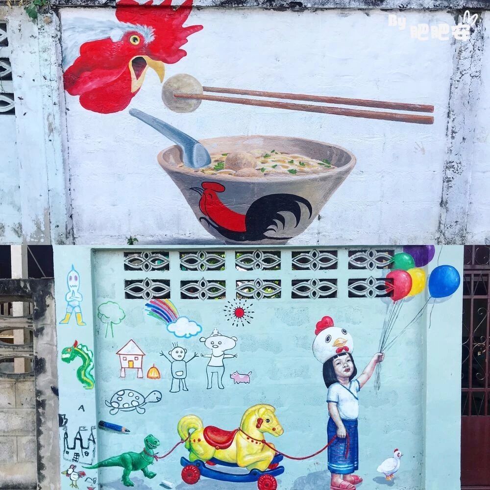有爱的墙绘街,就在Ratsadaphisek Bridge两侧民居房的外墙上,画与城市相关,有多面色彩鲜艳的公鸡墙。走走停停,让时间慢下来。
