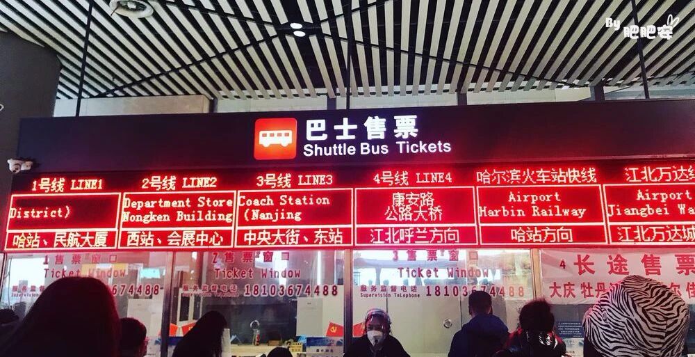 从机场方向到中央大街下车点的对面就是上车点,哈东站(始发站)每日发车时间4:00-21:00,每半小时一班。