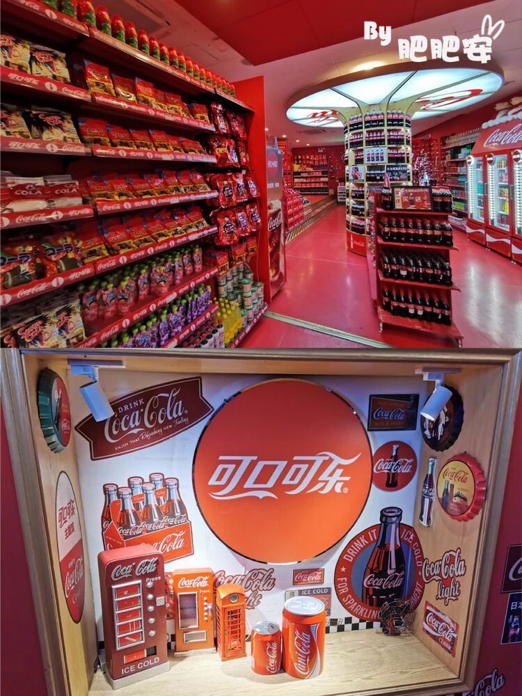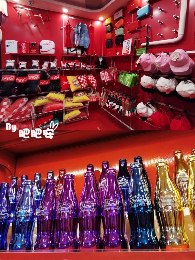 共有三层,一楼售卖姜汁可乐,二楼和三楼展示出售Coca Cola周边产品。