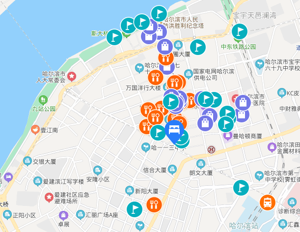 中央大街、面包的日尝、圣索菲亚大教堂、果戈里书店、朋来小院、瑞霞老砂锅居、可口可乐主题馆